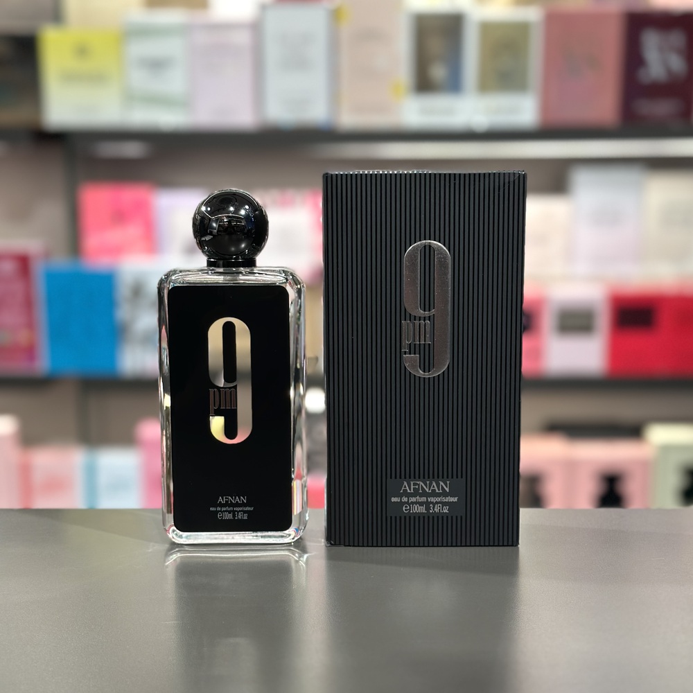 9pm de Afnan es una fragancia de la familia olfativa Oriental Vainilla para Hombres. 9pm se lanzó en 2020. Las Notas de Salida son manzana, canela, lavanda silvestre y bergamota; las Notas de Corazón son flor de azahar del naranjo y lirio de los valles (muguete); las Notas de Fondo son vainilla, haba tonka, ámbar y pachulí.