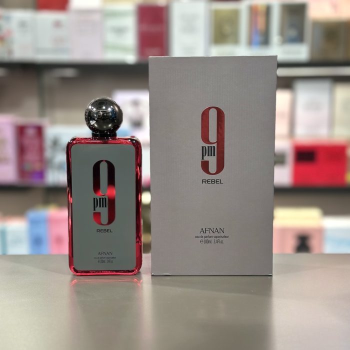 9 PM Rebel de Afnan es una fragancia de la familia olfativa Aromática Frutal para Hombres y Mujeres. Esta fragrancia es nueva. 9 PM Rebel se lanzó en 2024. La Nariz detrás de esta fragrancia es Gaël Montero. Las Notas de Salida son piña, manzana Granny Smith y mandarina; las Notas de Corazón son vainilla, cedro y musgo de roble; las Notas de Fondo son ámbar gris, Madera seca, caramelo y almizcle.