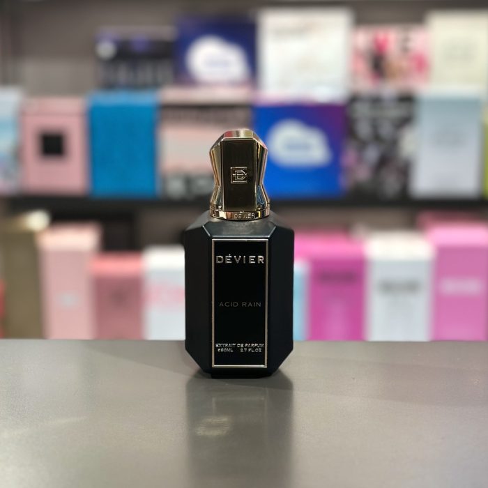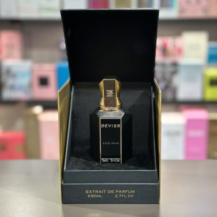 Acid Rain de Dévier es una fragancia de la familia olfativa Aromática Especiada para Hombres y Mujeres. Las Notas de Salida son trufa, flor de tiaré, bayas de enebro, ylang-ylang, frangipani (plumeria, plumaria, atapaima), bergamota, naranja tangerina y cidra; las Notas de Corazón son lirio de los valles (muguete), pimienta rosa, durazno (melocotón), ylang-ylang, nardos y flor de loto; las Notas de Fondo son cacao, pachulí, vainilla, mirra, sándalo, musgo de roble y almizcle blanco.