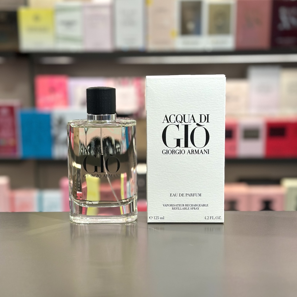 Acqua di Gio de Giorgio Armani es una fragancia de la familia olfativa Aromática Acuática para Hombres. Acqua di Gio se lanzó en 1996. Acqua di Gio fue creada por Alberto Morillas, Annick Menardo y Christian Dussoulier. Las Notas de Salida son lima (limón verde), limón (lima ácida), bergamota, jazmín, naranja, mandarina y neroli; las Notas de Corazón son notas marinas, jazmín, calone, romero, durazno (melocotón), fresia, jacinto, ciclamen (violeta persa), violeta, cilantro, rosa, nuez moscada y reseda (miñoneta); las Notas de Fondo son almizcle blanco, cedro, musgo de roble, pachulí y ámbar.