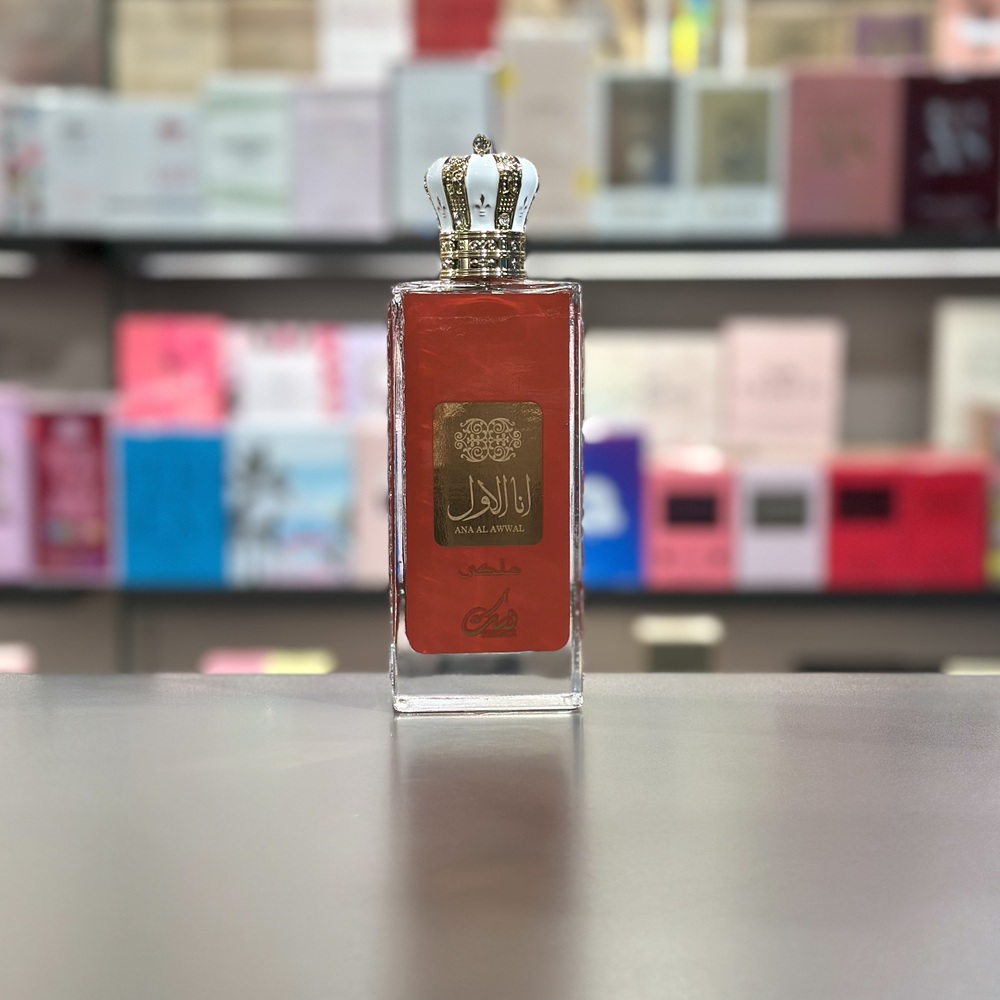 ANA AL AWWAL ROJA es una fragancia apasionada y sofisticada que captura la esencia del romance y la intensidad. Las notas de salida son una mezcla vibrante de cítricos y frutas rojas, como la frambuesa y la mandarina, que despiertan los sentidos. El corazón del perfume revela un bouquet floral con toques de rosa, jazmín y peonía, aportando una feminidad y elegancia inconfundibles. La base de la fragancia, compuesta por vainilla, almizcle y sándalo, ofrece una calidez duradera que envuelve la piel. ANA AL AWWAL ROJA es ideal para quienes desean una presencia inolvidable y refinada en cualquier ocasión.