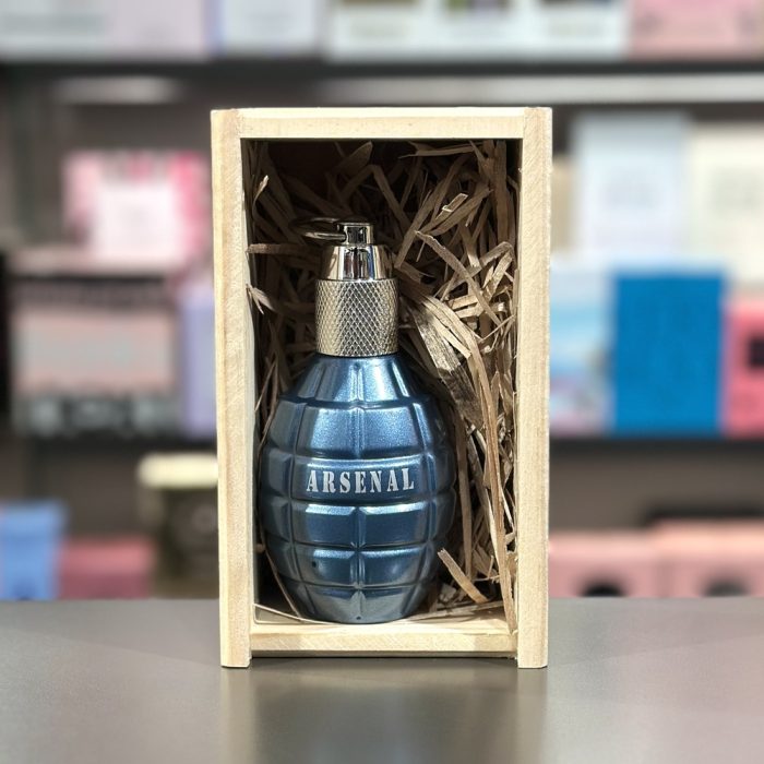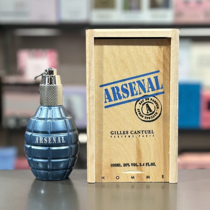 Arsenal Azul es un perfume masculino fresco y amaderado con toques cítricos, ideal para hombres dinámicos que buscan un aroma versátil y enérgico.