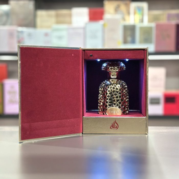 Emeer Lattafa 3.4 EDP es una fragancia masculina que irradia lujo, sofisticación y fuerza. Con una mezcla vibrante y cálida de notas orientales, amaderadas y especiadas, Emeer se presenta como una fragancia que se destaca por su profundidad y riqueza, evocando la esencia de un hombre elegante y audaz. Perfecta para quienes buscan una fragancia con presencia, duradera y que deje una estela impactante.